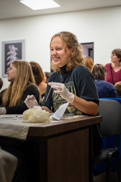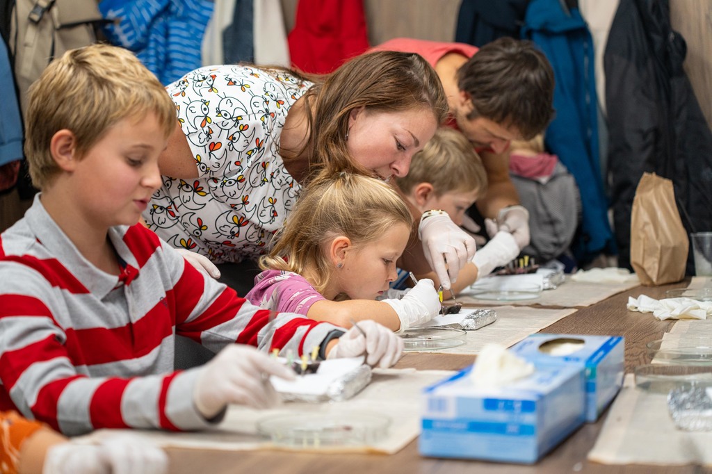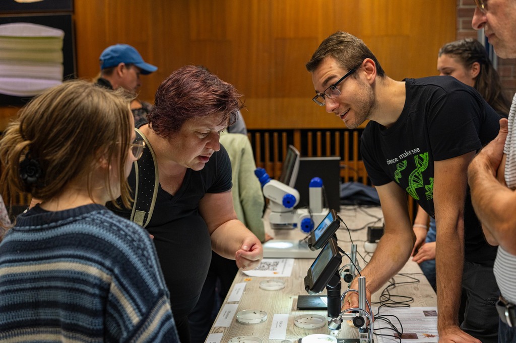 Stejně jako v předchozích ročnících zaujala i řada dalších stanovišť Biologického centra, která nabídla komentované ukázky, vědecké pokusy a hravé úkoly pro děti i dospělé. Návštěvníci se zde seznámili s bohatstvím přírody i s tím, jak se zkoumá – od druhové pestrosti hmyzu, ryb, vodních řas či rostlinných semen, přes jazykové perličky českého biologického názvosloví až po způsoby komunikace v živočišné říši. Odvážnější zájemci si pod vedením biologů vyzkoušeli pitvu myši, jiní zase v duchu pohádky Sůl nad zlato objevovali krásu krystalů soli pod mikroskopem a zjišťovali, k čemu se v laboratoři elektronové mikroskopie používá zlato a diamant. Děkujeme také za účast zoologů z Národního parku Šumava, kteří představili druhy zvířat vracející se do šumavské přírody.